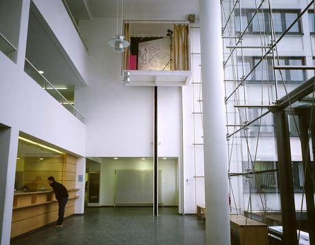 2. Modernism’s strategies of surveillance, transparency and controlling: Modernism produced a wide variety of spaces in the form of White Cubes, not only exhibition institutions but also production plants, administrative buildings and residential spaces.5 The White Cube seems, in comparison to contemporary glass palaces of production and administration, almost like protected, interior spaces. In contemporary glass palaces the motif of seeng and being seen, of subjects and objects located along a hierarchical line, plays a crucial rule. Not only does it oversee, it also teaches subjects to think of themselves as being seeing and thus to be disciplined citizens of the state who act of their own responsibility, having internalized authority as permanent self-control. Some notion of this becomes evident when the exhibition place itself sits in a small glass box and thus is not only visible but also observing and commenting from above. The Liftarchiv thus represents the point of intersection of discourses – of the Repressive State Apparatus and the civil society, administration and commentary, a prestige function, autonomy and pedagogy – and at the same time, admittedly, it is part of all that.