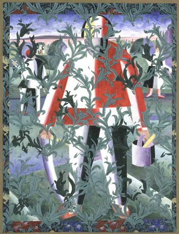 (From the painting Reaper by David Mabb (2001) based on Kazimir Malevich's Reaper. Painted by Rajendra Sharma.)